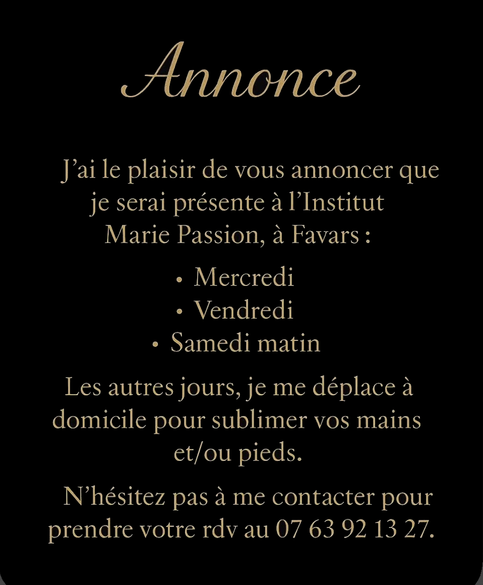 Fort de 12 ans d’expertise, l’Institut Marie Passion vous offre des soins de qualité, adaptés à vos besoins et réalisés avec un savoir-faire reconnu.